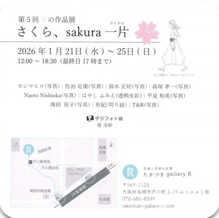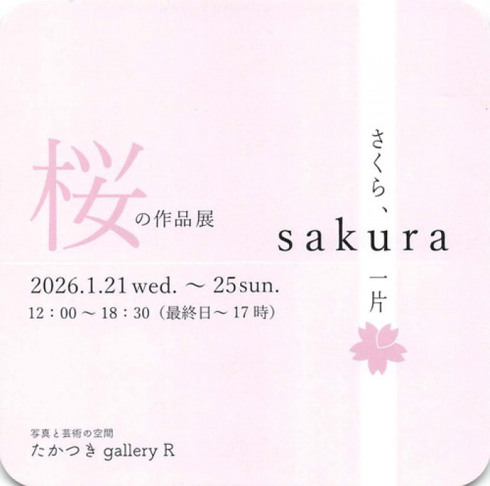 会員の 高塚孝一、南田祐子両氏が参加しているグループの写真展「桜の作品展」が1月21日(水)から「たかつき gallery R」で開催されます。ご都合が許せばご覧ください。